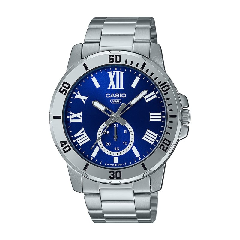 Casio Analog Blue Dial Stainless Steel Band Watch for Men - MTP-VD200D-2BUDF