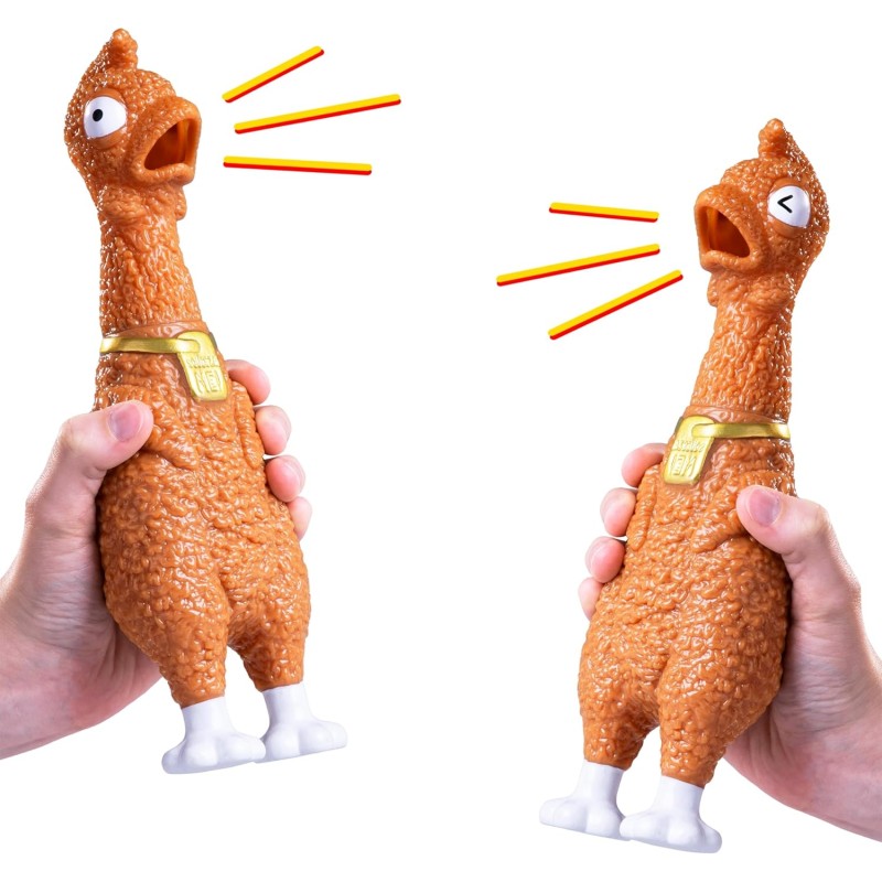 ·       A squeezable screaming rubber chicken made to look fried