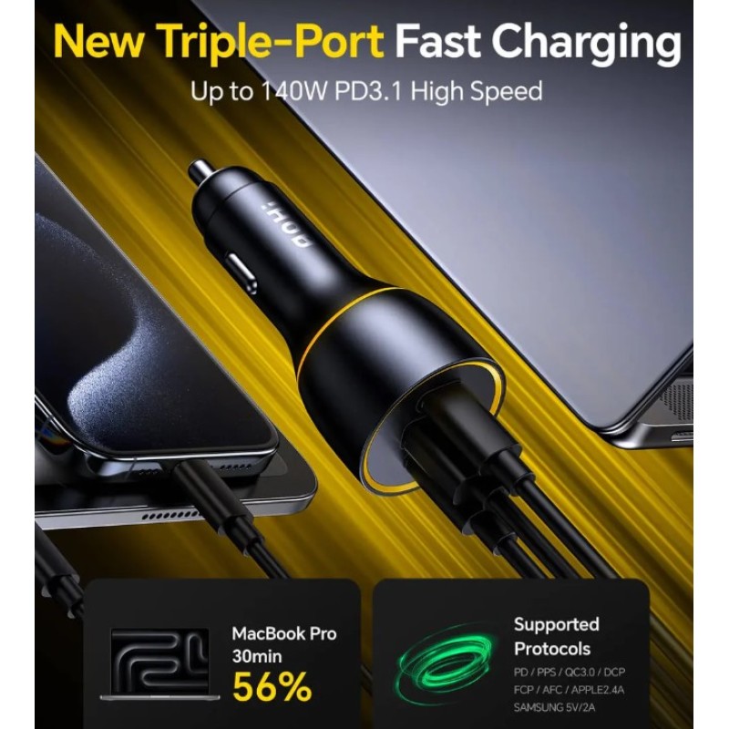 - New Triple-Port Fast Charging- Up to 140W PD3.1 High Speed: Equipped with new PD3.1 technology, the AOHI 170W SuperAuto Charger allows you to charge up to 3 devices simultaneously. With upgraded AI Intelligent Diversion, it ensures seamless multi-port charging without interruptions, even when re-plugging. Delivering up to 140W output, it’s powerful enough to charge a MacBook faster than ever.