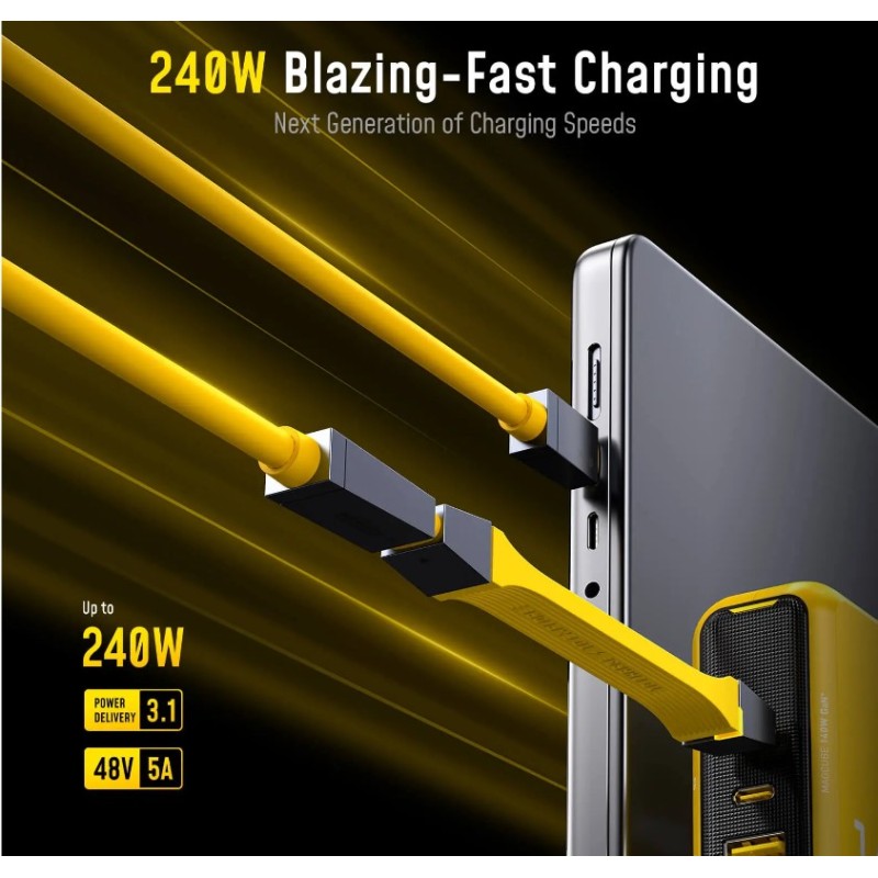 · PD 3.1 240W Super Power Delivery: ths remarkable cable can elevate your MacBook's battery level by up to 56% in just 30 minutes owing to its cutting-edge PD 3.1 240W super-fast charging technology. Also the best companion for the latest iPhone 17, iPhone 17 Air, iPhone 17 Pro, iPhone 17 Pro Max. Whether you're a professional on the go, a student with tight deadlines, or anyone navigating the demands of a fast-paced lifestyle, The Future Racing Cable ensures that your devices are powered up swiftly and efficiently.