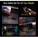 · World's First Splicable USB4 & PD 3.1 Cable Set: As the world's first modular-extension USB4 PD 3.1 cable set, it provides the ultimate power performance: 240W super-fast charging, 40Gbps lightning-speed data transmission, and high-definition 8K@60Hz audio/video transfer. This 4-in-1 cable set is sufficient to solve all USB-C and USB-A solutions, catering to diverse scenarios concurrently and addressing the longstanding inconvenience of requiring multiple cables.