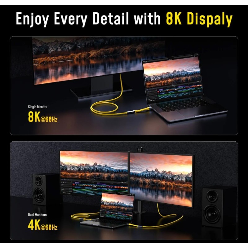 · Support 8K@60HZ Ultra HD Display: AOHi The Future Racing Cable boasts an Ultra HD audio and video transfer that enables seamless mirroring of your device to a USB-C external display, experiencing vibrant, high-resolution visuals at an impressive 8K@60Hz (reaching 7680x4320P). Whether you're editing videos, designing graphics, playing games, analyzing data, or tackling complex tasks, our cable enhances your productivity with ease and precision on an expanded screen.