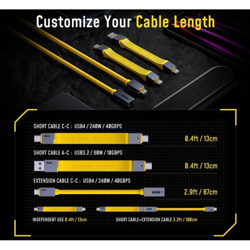 AOHi The Future 4-In-1 Splicable USB4 PD 3.1 Racing Cable Set - AOC-L012