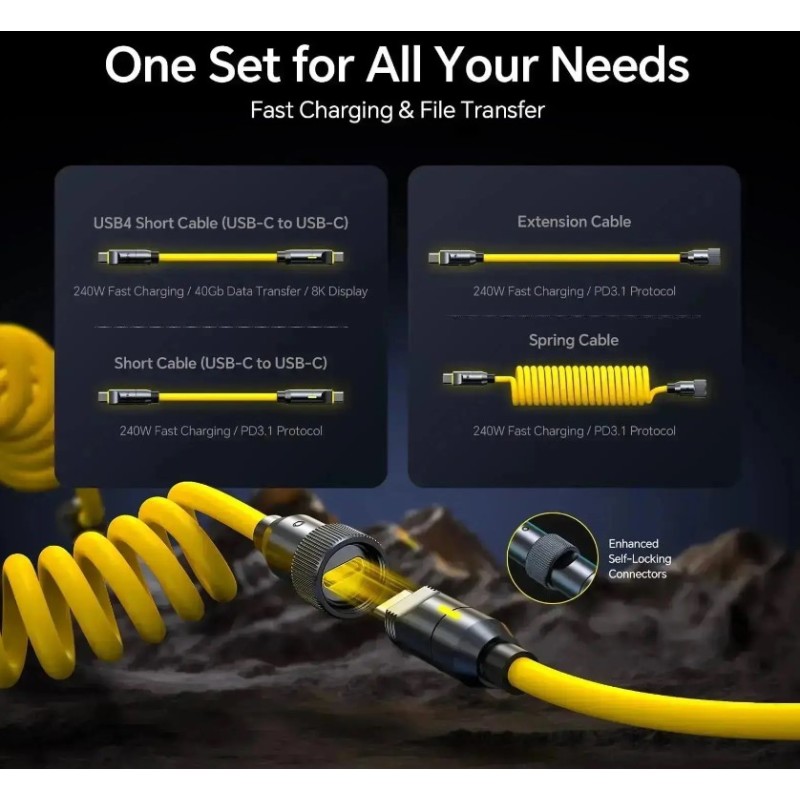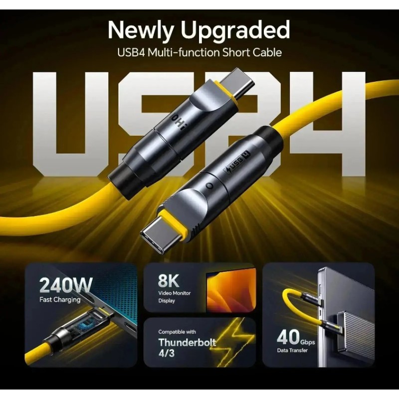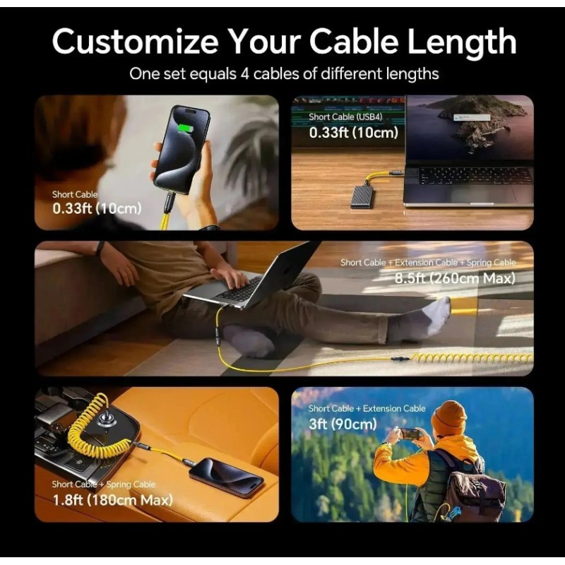 ·       The World’s Fully Customizable Cable Set: With 240W high power, 40Gbps lightning-speed data transmission, and high-definition 8K@60Hz audio/video transfer, AOHI The Future PRO Creative Power Cable Set allows you to create the charger of your dreams, with the ability to charge from a 10cm handheld device to long distances of up to 2.6 meters (0.33FT~8.5FT).  ( Only the USB4 short cable can reach up to 40Gbps data speed and 8K video transfer, compatible with Thunderbolt 4/ 3)