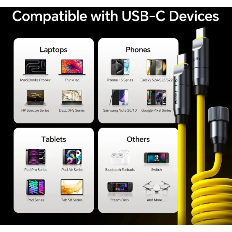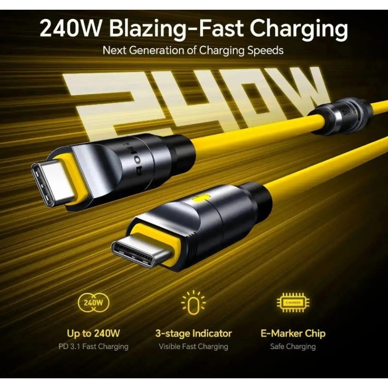 ·       Fueled by Next-Gen Flash Charging Tech: Equipped with the latest USB Power Delivery 3.1 Technology, it can charge your device up to 240W 48V/5A, which is significantly quicker than ordinary charging cables--it only takes 30 minutes to charge MacBook Pro 16" from 0 to 56%. Also the best companion for the latest iPhone 17 series. Thanks to its hyper-speed technology, charging time is reduced from hours to minutes, saving you significant time and entering new era of quick charging!