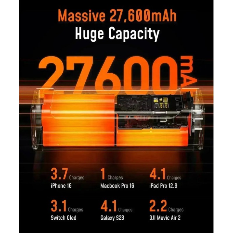 ·       Massive 27,600mAh Capacity for Extended Usage: Despite its compact soda-can size, this power bank boasts a high-capacity 27,600mAh battery. It can charge a MacBook Pro 16" once or an iPhone 16 about 3.7 times. Also the best companion for the latest iPhone 17 series. Stay connected and eliminate battery worries whether you're working, traveling, or relaxing.