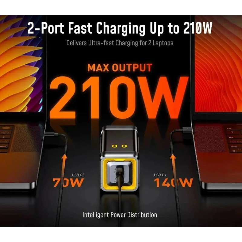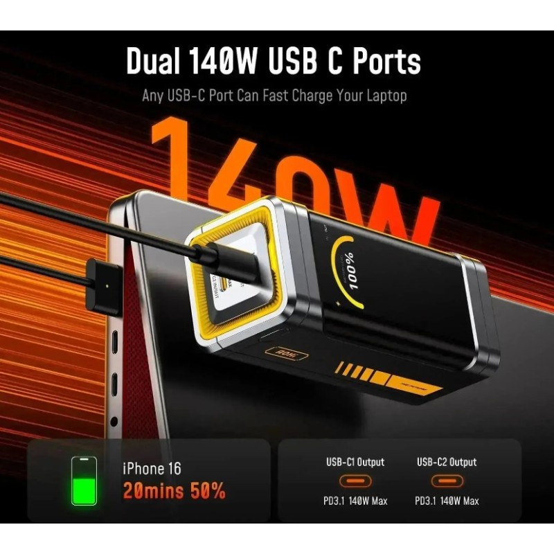 · 210W Output –Compact Yet Unmatched in Power: Starship is one of the most powerful and compact power banks ever made—delivering up to 210W total output. Both USB-C ports support 140W high-speed charging , making it the rare few that can fast charge two MacBook Pros at once—setting a new standard for power in an ultra-compact size.