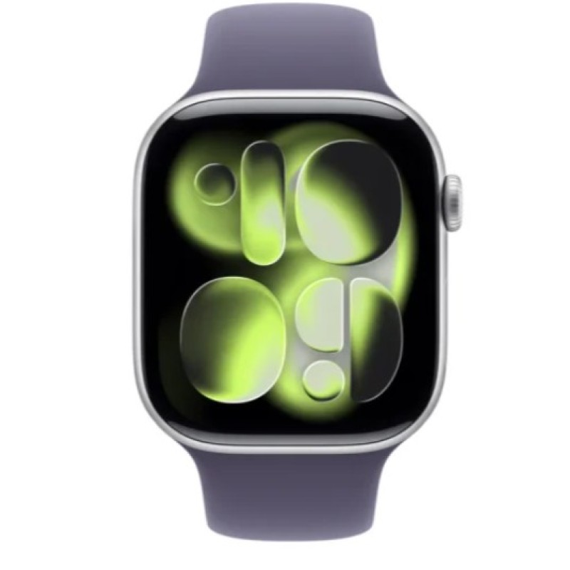 Apple Watch Series 11 GPS 46mm Silver Aluminium Case with Purple Fog Sport Band – M/L