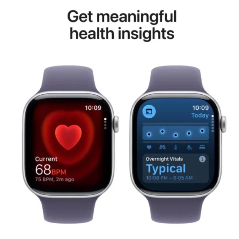 · EVEN MORE HEALTH INSIGHTS—Take an ECG anytime. Get notifications for a high and low heart rate, an irregular rhythm, and possible sleep apnea. View overnight health metrics with the Vitals app and take readings of your blood oxygen.