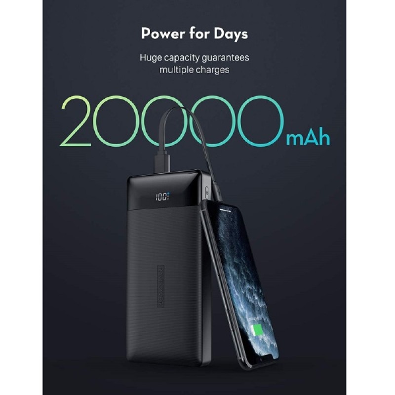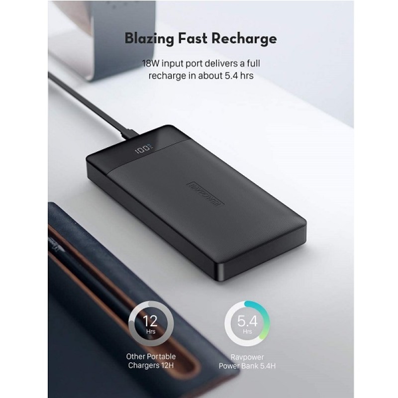 - The RAVPower 20000mAh high capacity power bank provides the speed and power you need to satisfy the appetite of any phone. Slide the palm-size power bank into your bag, set out on your trip, and relax knowing you can revive your dead tech at any time. RAVPower is the one-stop power charging solution for millions of customers from around the world. Leader in fast wireless charging thanks to our groundbreaking hyperair technology, our wide variety of portable chargers and charging accessories provide a reliable way to stay powered anywhere, anytime.