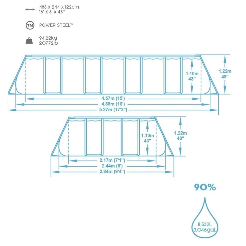 Bestway Power Steel Rectangular Pool Set, 4.88 m x 2.44 m x 1.22 m - 56670