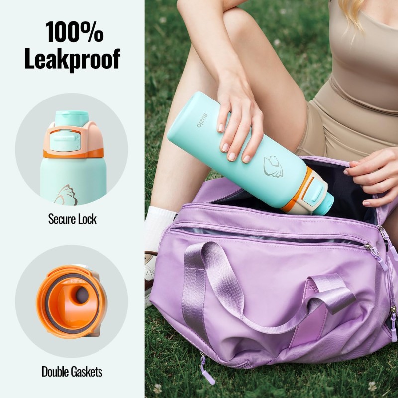 · Leakproof Pop & Chug Lid: This 32oz insulated bottle comes with an upgraded Pop & Chug lid, designed with a secure locking mechanism to ensure that the water bottle does not leak and wet your backpack. Simply press the button to drink, then slide down to lock. Plus, the built-in carry loop makes it easy to take on the go
