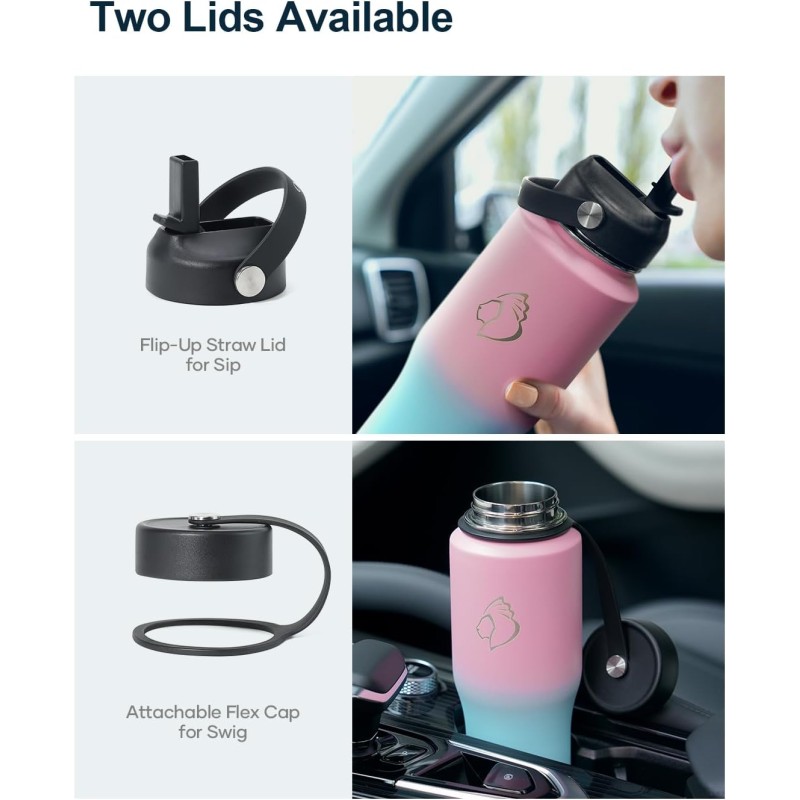 · Convenient: Always feel annoyed to twist a lid to drink when you cannot move your hands off the wheel? Then the 40 oz insulated water bottle with straw is designed for you. Just flip the straw lid, sip, and flip it back down, no block of view by caps, making the drive trip safer and smoother. The spout lid is perfect for a better drinking experience indoors or outdoors.
