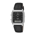 Casio Analog-Digital Black Leather Band Watch for Unisex - AQ-230EL-1ADF