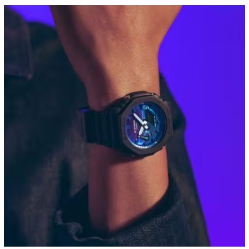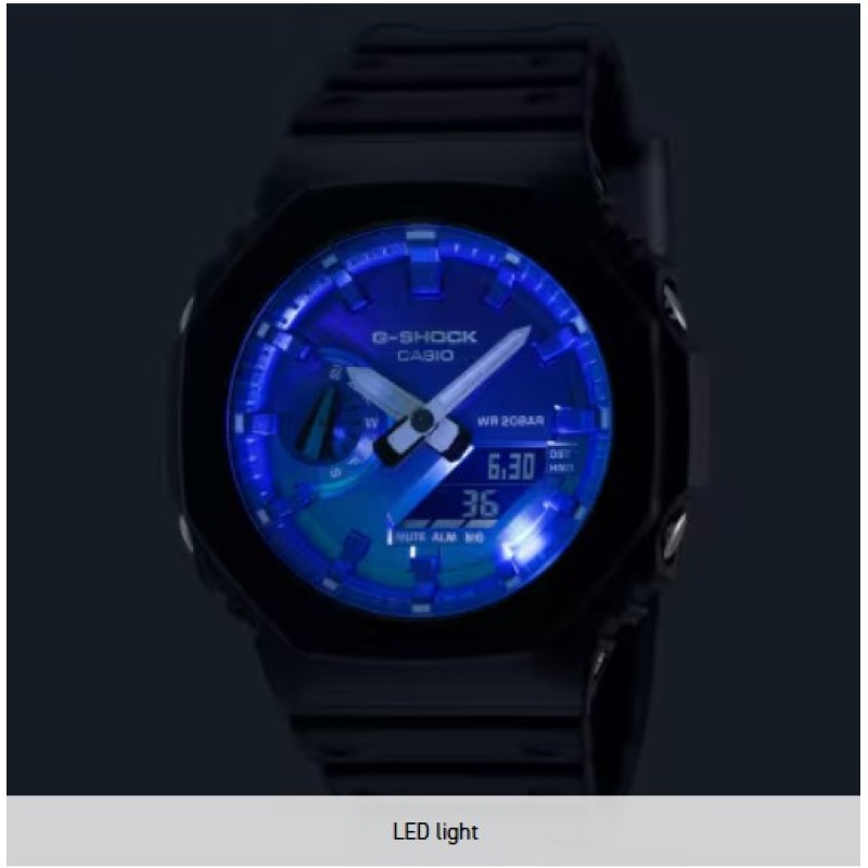 the GA-100FL-1A or GA-2100FL-1A with vivid blue dial and gradated gray-on-black