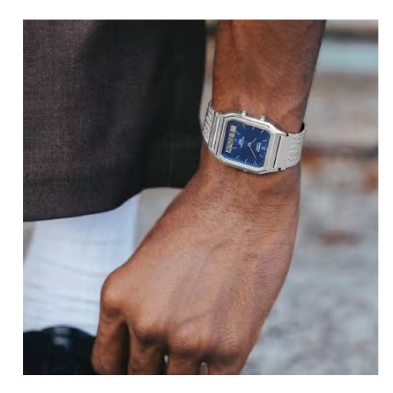 Casio Stainless Steel Mesh Band, Blue Dial Watch for Unisex - AQ-230EM-2ADF