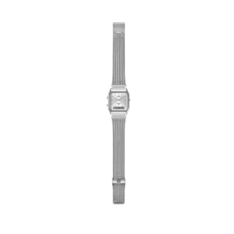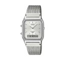 Casio Stainless Steel Mesh Band, Silver Dial Watch for Unisex - AQ-230EM-7ADF