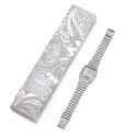 beautiful curves of the classic paisley pattern on the band and dial in