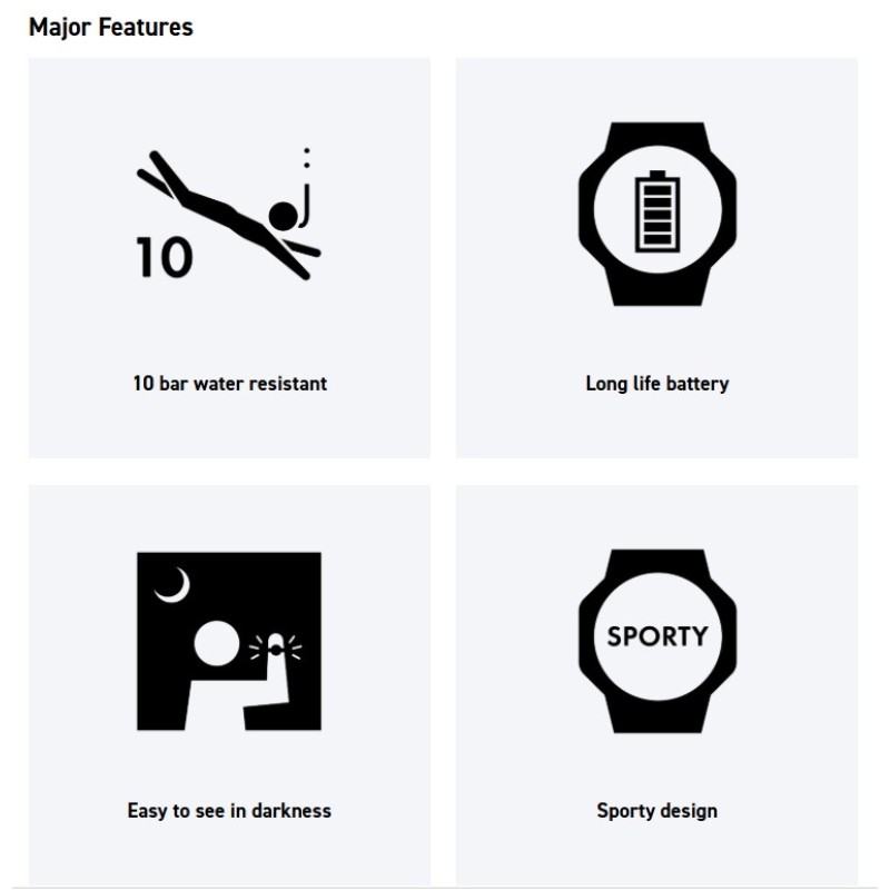 glance. Water-resistant up to 100 meters, ten-year battery life, LED backlight,