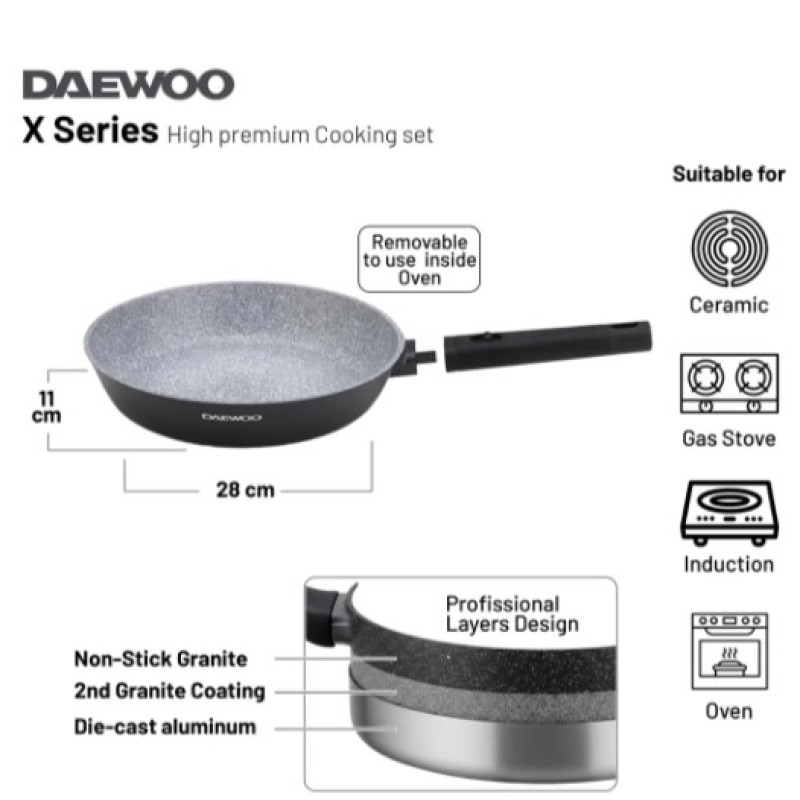 • Nothing matters to someone who loves cooking more than premium cookware and excellent kitchenware. This Daewoo 28cm Die-Cast Aluminum Fry Pan is the best cookware for cooking all your meals, as it’s a non-stick pan that’s suitable for cooking breakfast, lunch, dinner, and even light snacks. The Daewoo 28cm Die-Cast Aluminum Fry Pan is great for family meals and big portions, so it will help you make your day better and your meals more delicious.