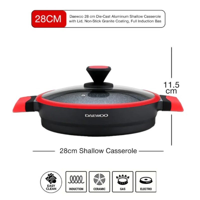 Daewoo Shallow Granite Casserole with Lid, 28cm - Red/Black - DCC 280S