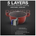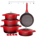 Daewoo TS Series Granite Cooking Set of 9 Pcs with 4 Pcs Silicone Pot Handle, Red - DCS5T