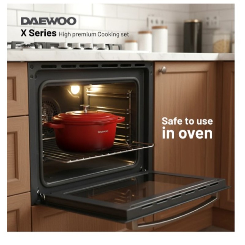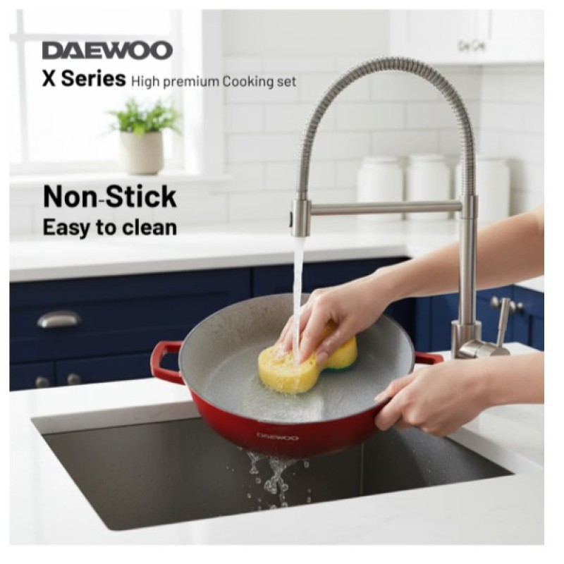 Upgrade your kitchen with the 9-piece Daewoo Cast Aluminum set. The set is designed for home chefs who care about every detail of their meal, from taste to health to even the style of their kitchen. This 9-piece cookware set has every size possible, with 4 different-sized pots and a non-stick pan. This set promises everything from taste to style and even effortless cleaning.