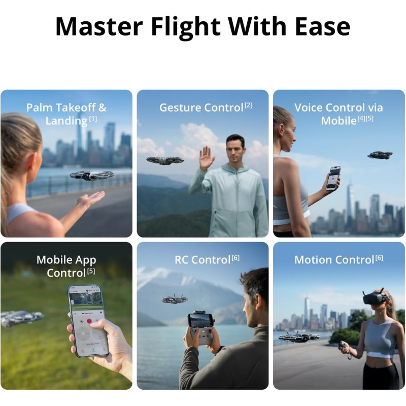 - Palm Takeoff & Landing [1], Gesture Control [2] - Enjoy easy palm takeoff and landing, plus intuitive gesture controls for hands-free operation and seamless flying experiences.