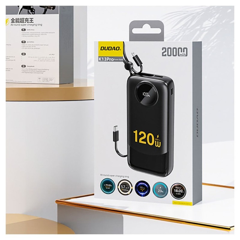 Dudao 4-in-1 120W 10,000mah Power Bank with Lanyard Build-In Cable - K13