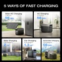 ·       Full Charge in 56 Min. With DELTA3's upgraded technology combining 500W solar input and 1500W max AC input, a full charge is achieved in 56 minutes. An 80% charge can be reached in just 30 minutes