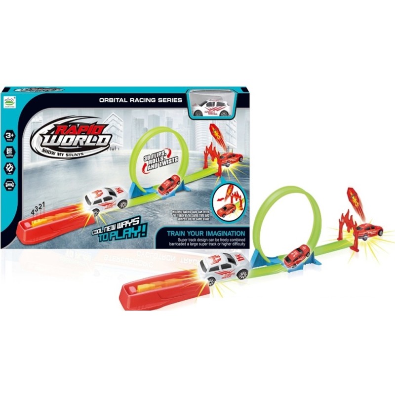 Loop: Cars race through a rapid spin tunnel for fast-paced fun.