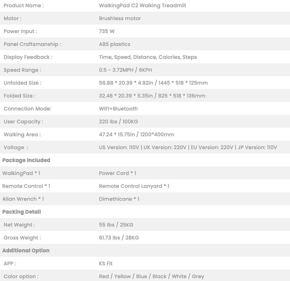 · The Kingsmith WalkingPad C2 Mini Foldable Walking Treadmill WPS1F allows an effortless routine that fits any lifestyle - allowing you to increase physical activity without sacrificing your valuable time or energy. Get addicted to living life fit today!