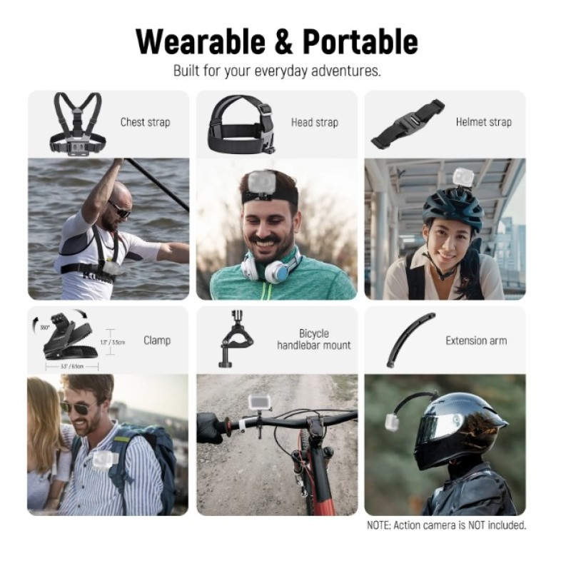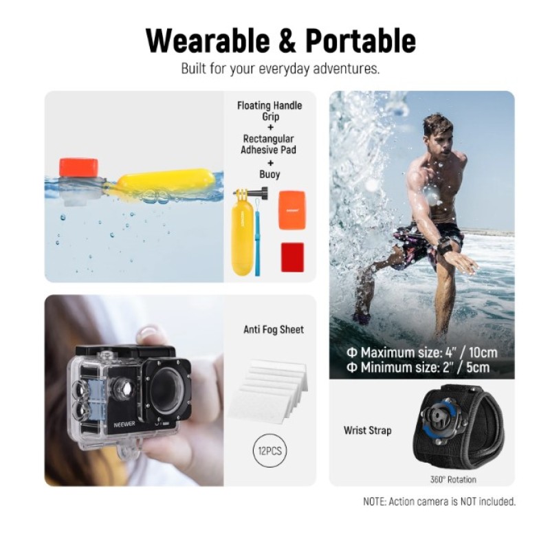 Product overview of the NEEWER 50 in 1 Action Camera Accessory Kit