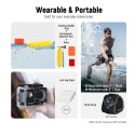 • Wrist Strap & Floating Handle Grip- Wrist strap with a 360° rotatable mount snugly fits your wrist for taking shots from different angles. The floating handle grip keeps your camera afloat when swimming or snorkeling. A lanyard prevents the camera from missing
