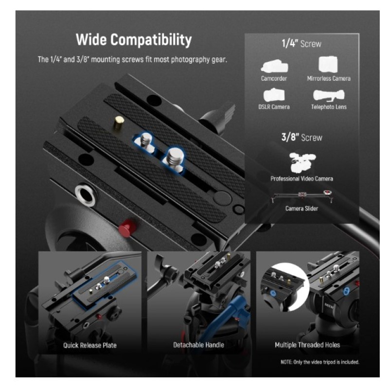 Product overviews of the NEEWER TP37 Video Tripod for Camera with Fluid Head