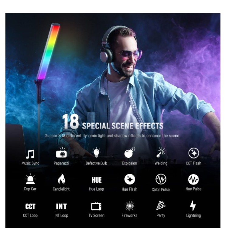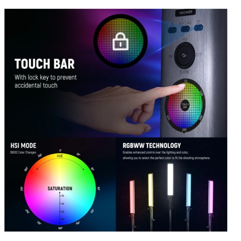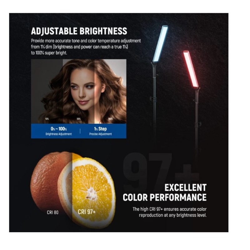 • Premium RGBWW Light Wand- Equipped with 80 RGB LEDs, 84 cold white LEDs, and 84 warm white LEDs, NEEWER BH-30S Light Wand produces premium lighting with CRI 97+ and TLCI 97+ for accurate color reproduction. NEEWER linear PWM lighting control supports fine tuning at 1% brightness within a broad and balanced light output. Compact and lightweight, it’s an ideal handheld portable tube light for video recording, portraits, vlogging, creative shooting, and live streaming