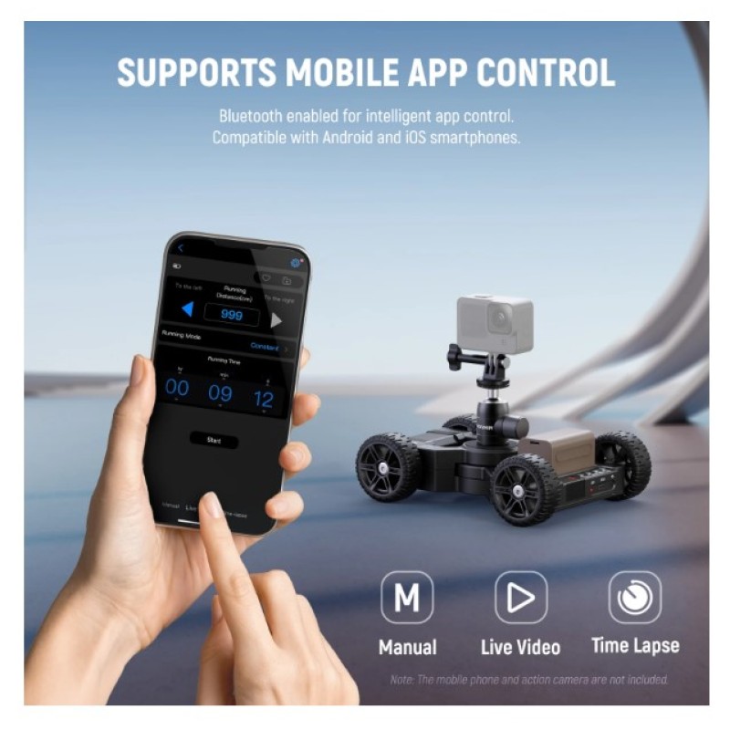 - Customizable Shooting Modes- In Live Video mode, you can set movement directions, movement distance (2.2-32.8ft/66-999cm), and movement mode (constant/slow). In Time Lapse mode, you can set shutter speed, frame by frame duration, number of shots, and fixed point shoot. In Button Control Mode, you can set movement directions, speed (1-5 levels), and movement mode (constant/slow). Note: Time Lapse photography requires a camera shutter cable (separately purchased)