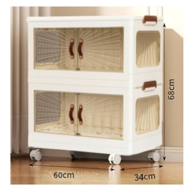 tiers with transparent doors, allowing you to view contents without opening. It