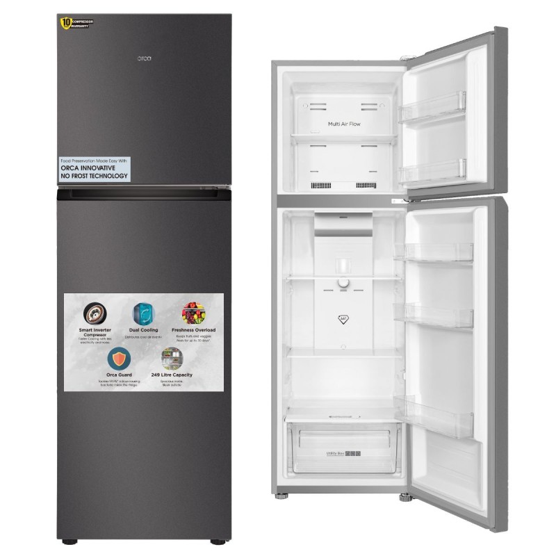 Orca Top Mount Refrigerator 249 Liters, Dark Silver - OR-TRF324WEDS