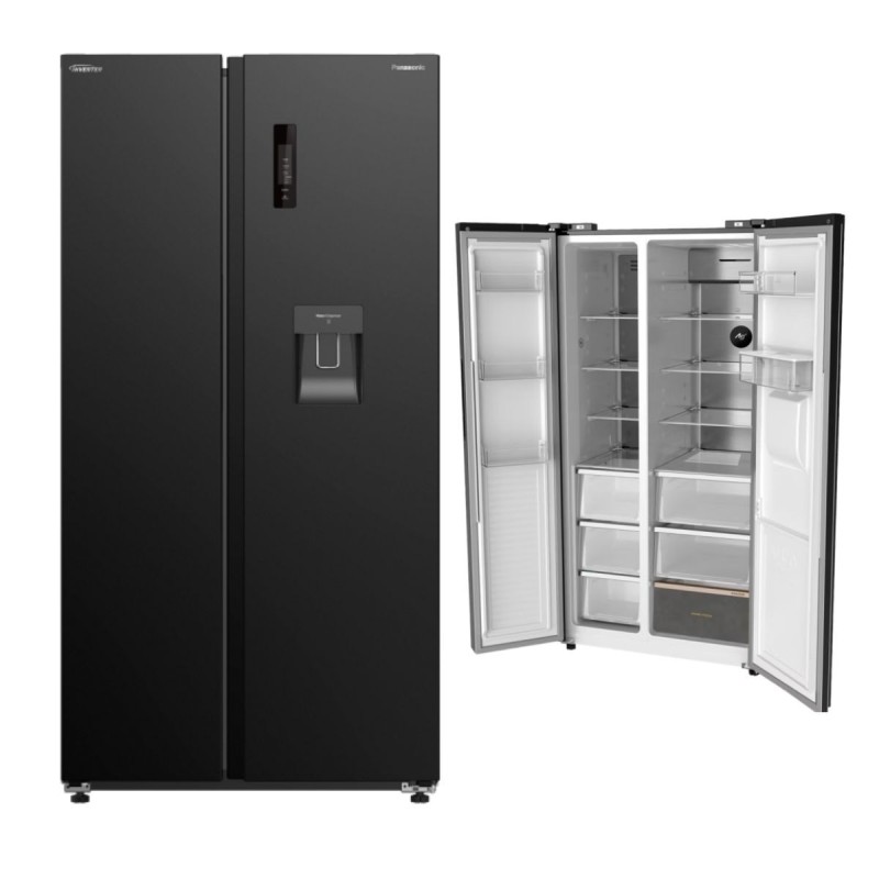 Panasonic Side by Side Refrigerator 610 Liters, Black - NR-BS80DMKKW