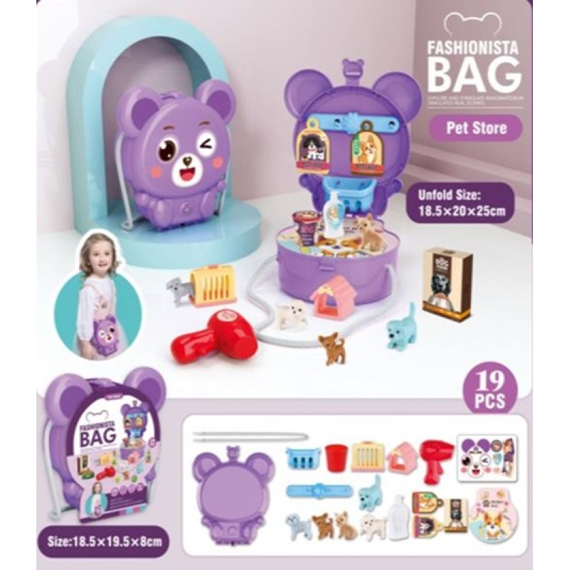 Pocket Toys Pet Shop Shoulder Bear Bag with Accessories 19pcs Set - KL01-7