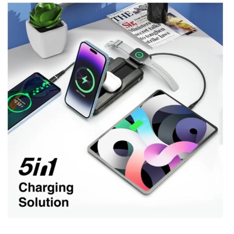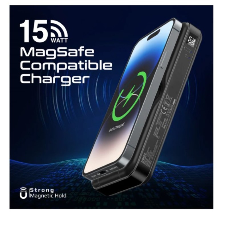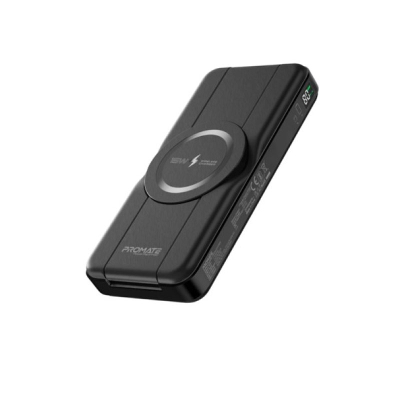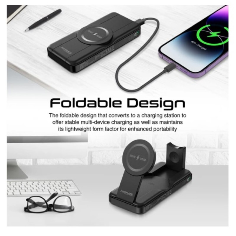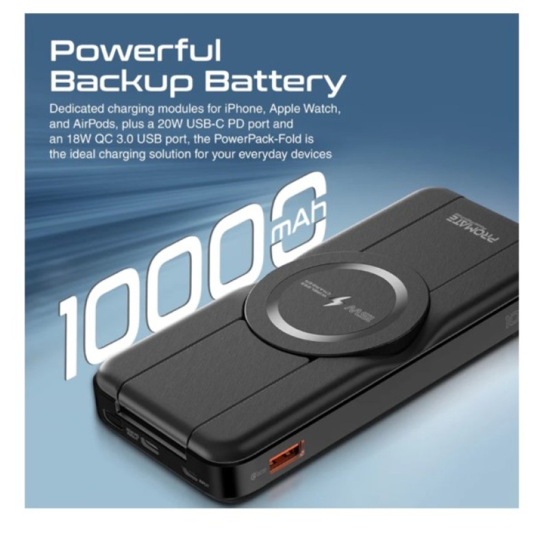 Promate 10,000mAh 5-in-1 Foldable MagSafe Compatible Wireless Charging Power Bank - PowerPack-Fold