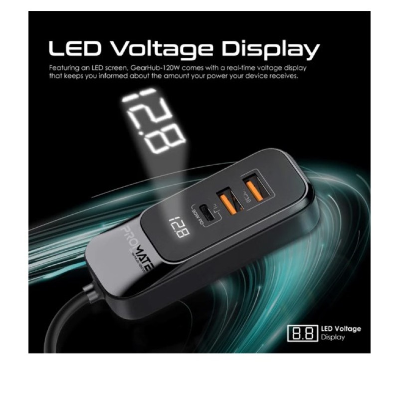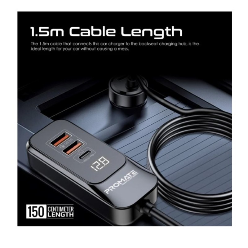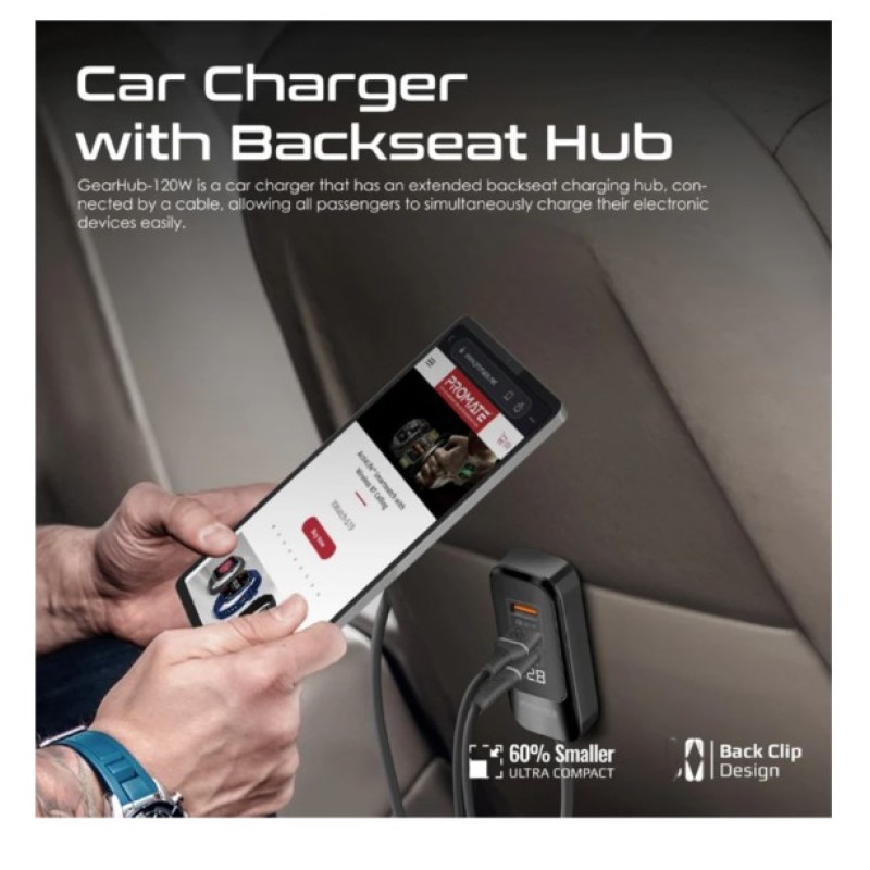 Promate 120W RapidCharge™ Car Charger with Multi-Port Backseat Charging Hub - GearHub-120W