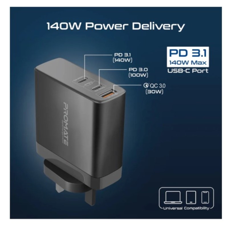 Promate 140W Power Delivery 3.1 GaN Charger - GANCHARGE