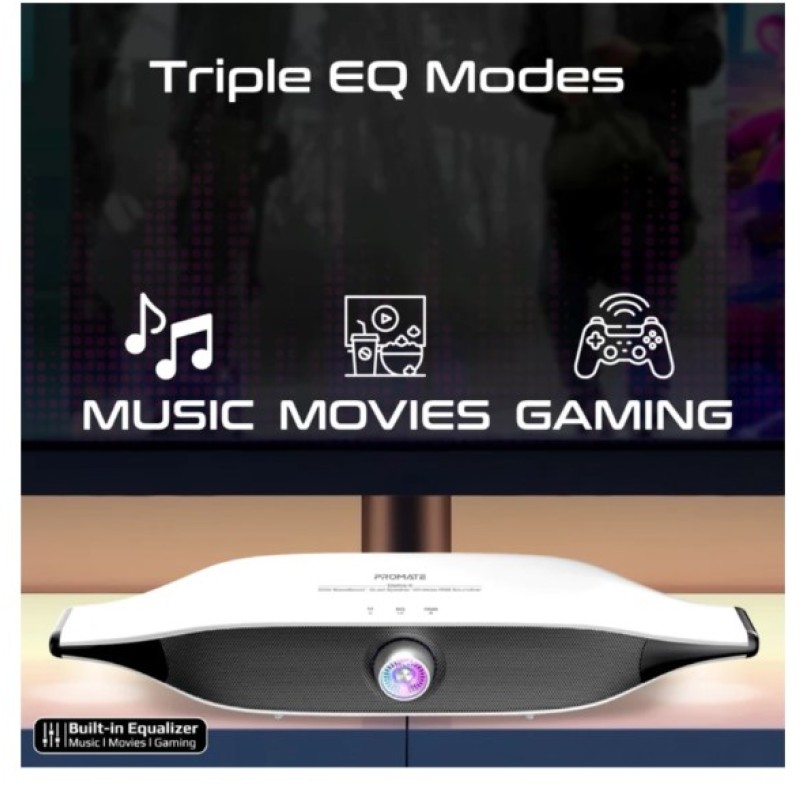 Promate 20W BassBoost™ Quad Speaker Wireless RGB Soundbar, White - Delta-X