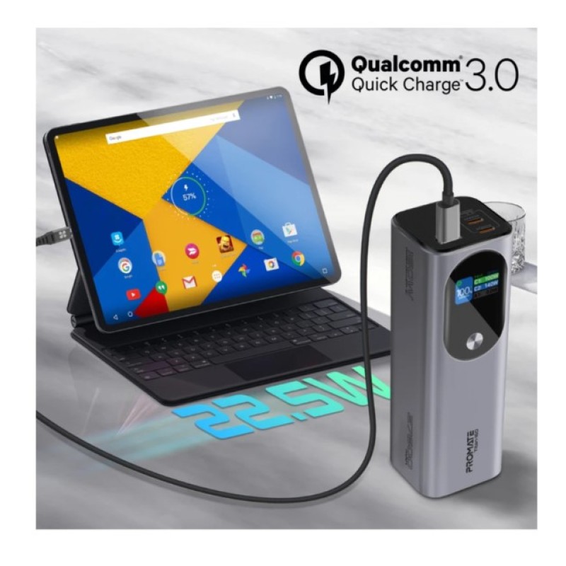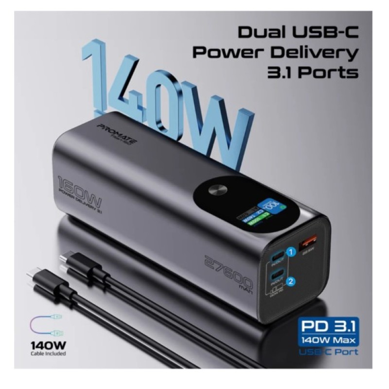 Promate 27,600mAh Ultra-Compact 160W Multi-Port PD 3.1 Power Bank with TFT LCD Screen - Titan-160