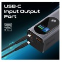 · Titan-160 serves as your ultimate power companion, featuring a robust 27600mAh lithium-ion battery for on-the-go charging. With a powerful 22.5W USB-A Quick Charge 3.0 port and a total of 140W output from the dual USB-C Power Delivery 3.1 input/output ports, this ultra-compact and lightweight power bank can rapidly charge up to three devices simultaneously. Equipped with a TFT LCD screen, this sleek power bank ensures secure and convenient power management for all your adventures. Smart charging, anytime, Titan-160 is the intelligent choice for those who demand efficient and reliable power for their devices.
