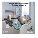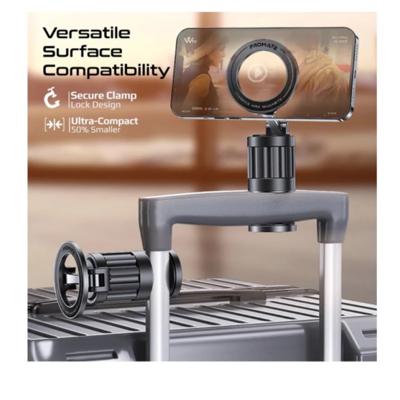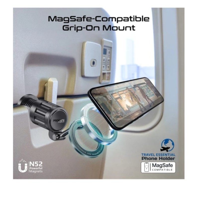 · SnagMount by Promate is your ultimate smartphone companion, designed to keep your device secure and accessible wherever you are. With MagSafe compatibility and powerful N52 rare earth magnets, this grip-on mount offers quick, effortless attachment. Its versatile design fits seamlessly on a variety of surfaces from tabletops to airplane trays to luggage handles, and not to mention that it is a perfect fit for all types of car screens as well, making it perfect for travel, work, or leisure.
