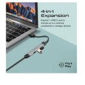 Promate 4-in-1 Multi-Port USB-C Data Hub, Grey - LiteHub-4