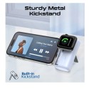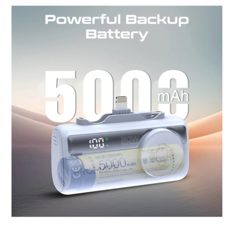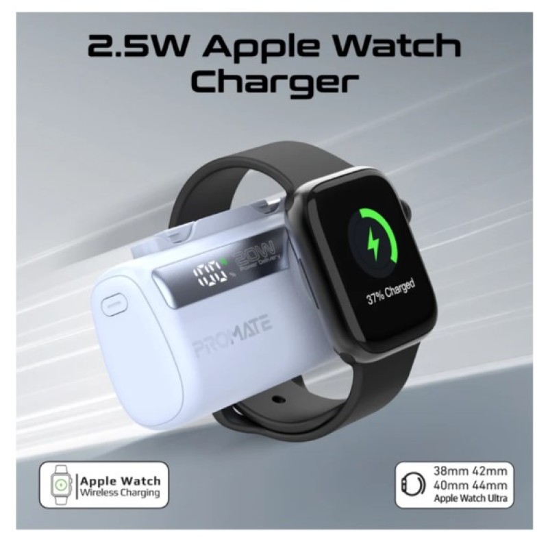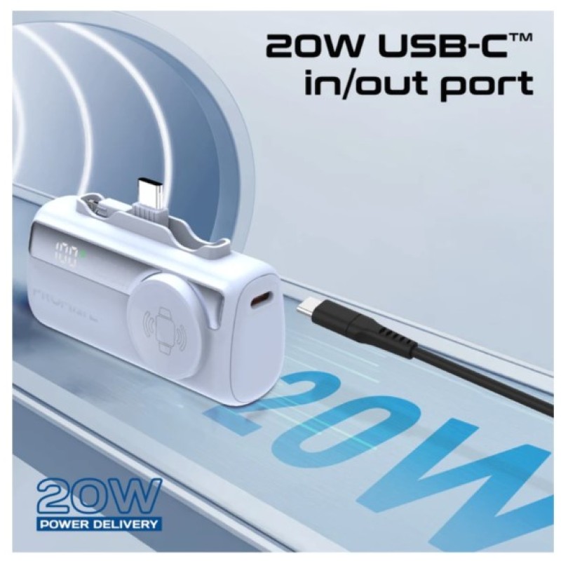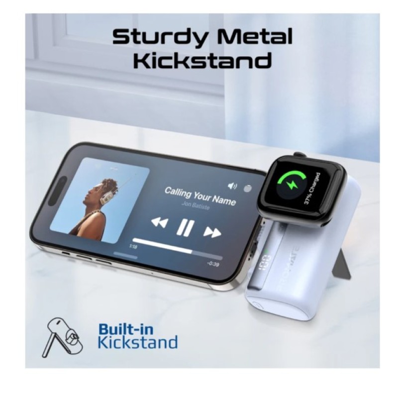 · Promate raises the bar for compact portable power with the all-new PowerUp-Trio 5000mAh Mini Power Bank. Seamlessly integrating cutting-edge technology into a compact design, this pocket-sized powerhouse features a trio of charging options including a 20W USB-C™ In/Out foldable connector, 12W Lightning output foldable connector, plus a dedicated 2.5W Apple Watch charger on the front. Engineered for safety and reliability, it includes over-charging and over-heating protection. Its sleek metal kickstand doubles as a sturdy support for hands-free viewing. With a portable, mini form factor, versatile charging options and an intuitive LED display for battery monitoring, the Promate Mini Power Bank is your ultimate companion for staying charged, connected, and in control wherever you go.